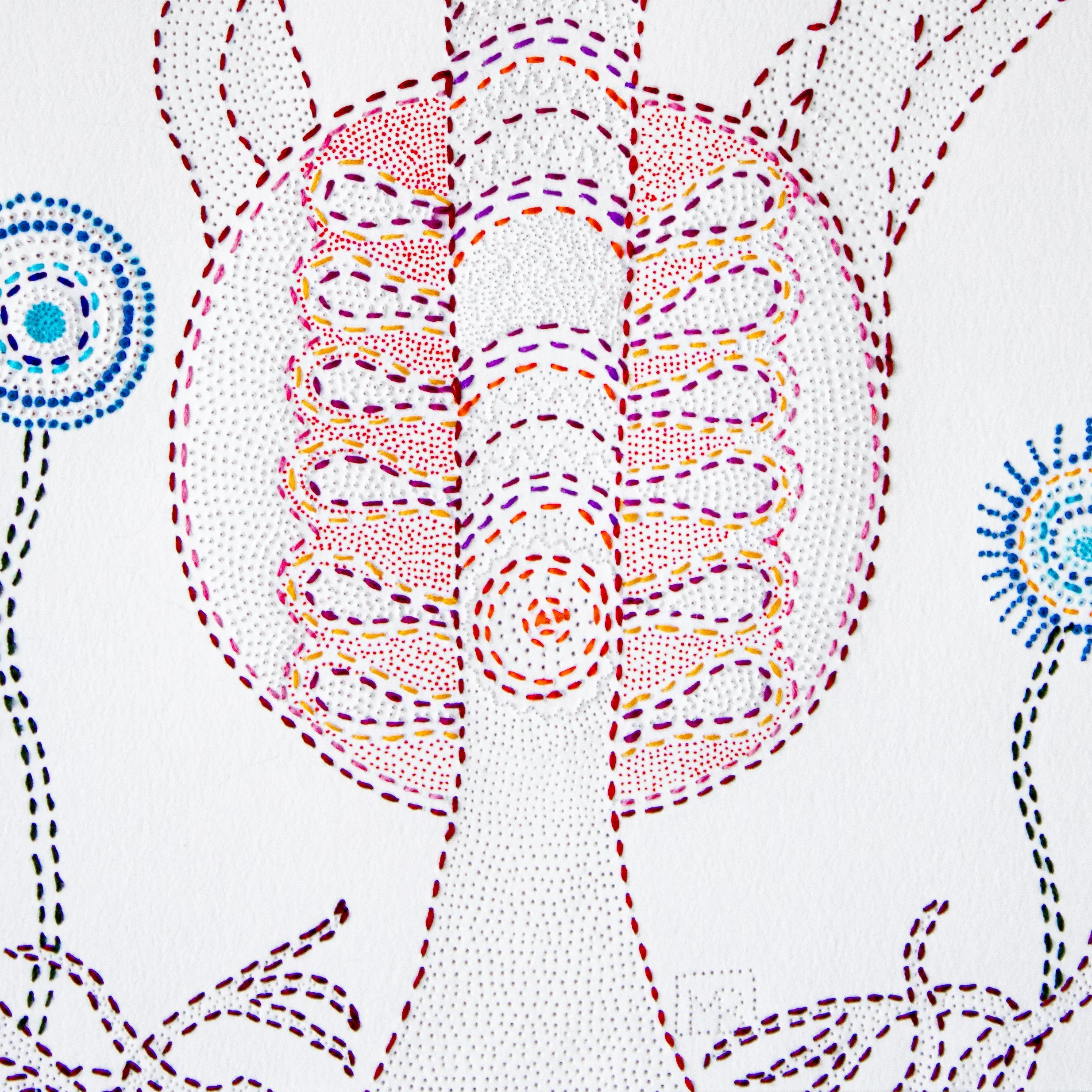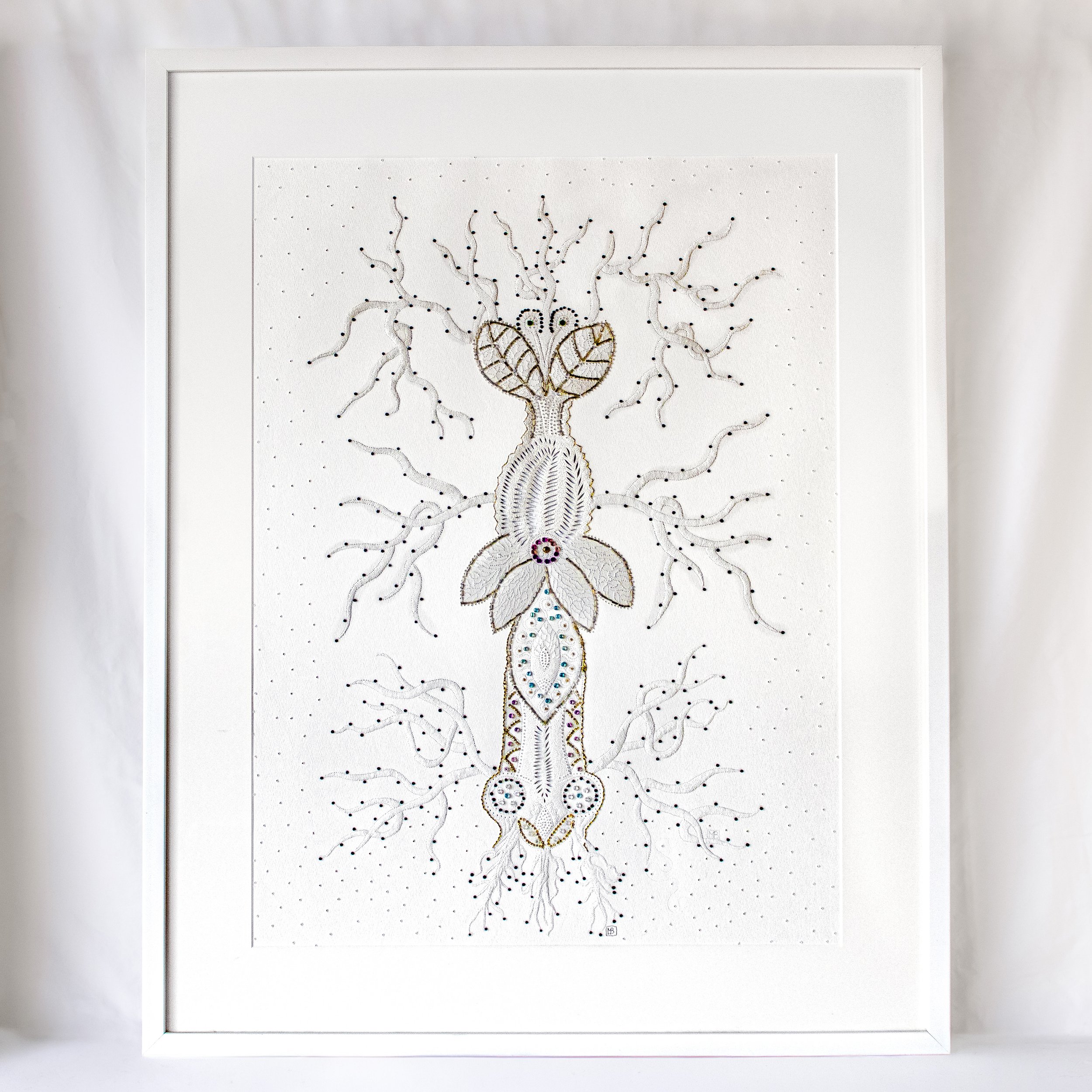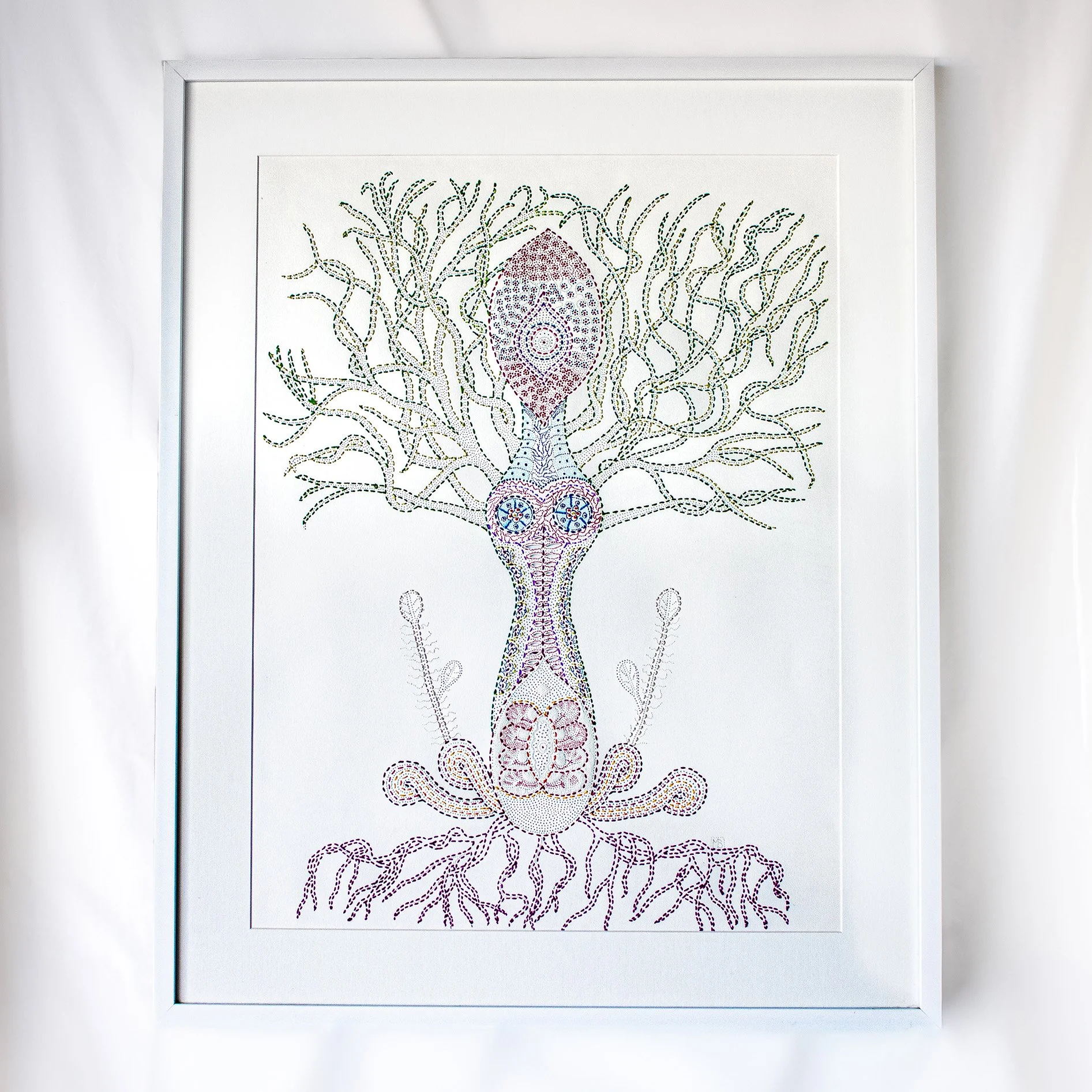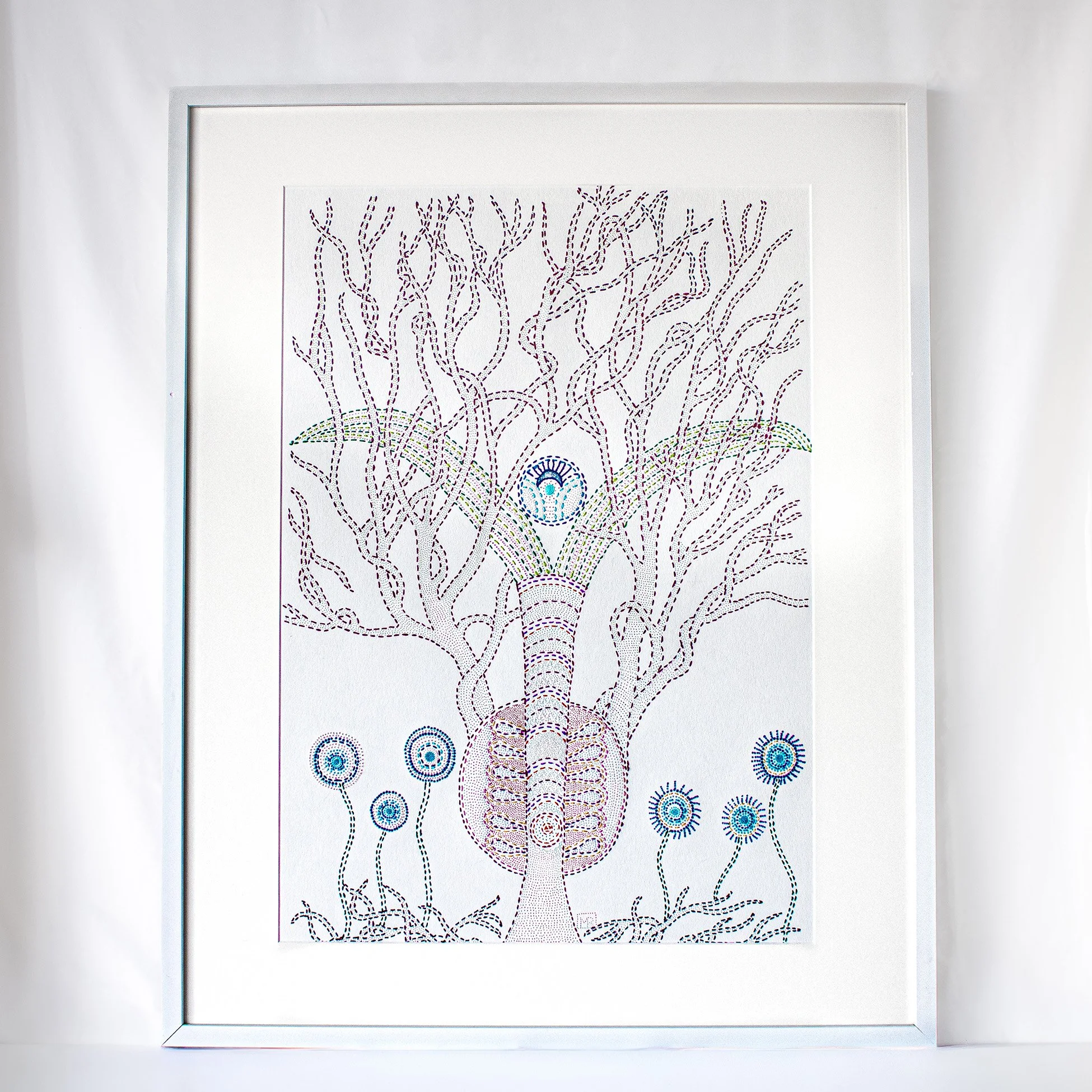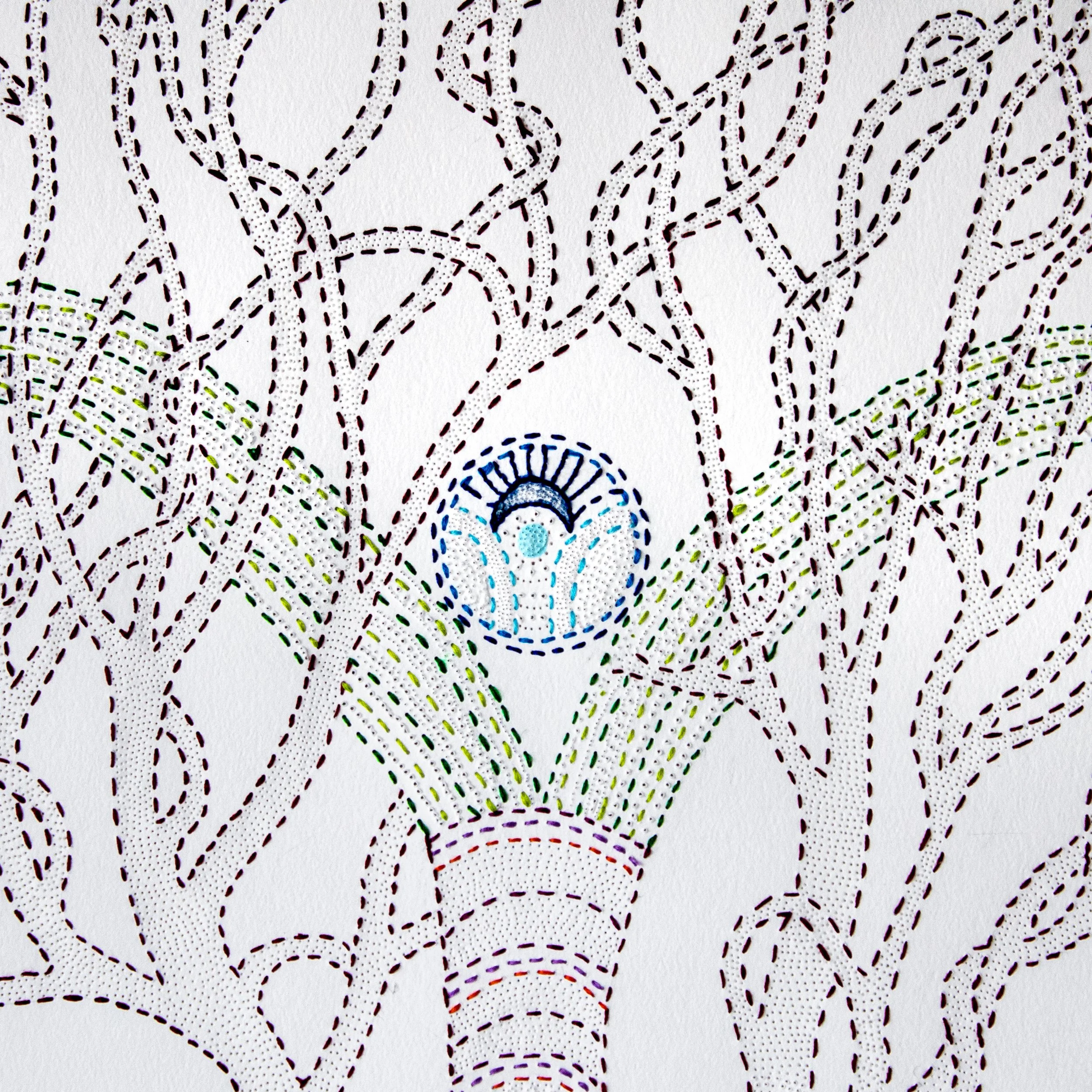 I am interested in creating narratives and images that reflect my interest in poetry, myth, rituals, and a sense of the sacred, in order to forge a spiritual atmosphere for meditation. In this category of work, I mostly question the boundaries between human beings and nature, particularly the intertwining of trees and the female body. These pieces imagine the transcendent meeting of the two, exploring themes of in-betweenness, safety, and existence between the sky and earth. The branches and roots of the tree are real, but between the two, in the trunk, is where I am reminded of human beings. I envision the trunk of a tree like a womb, a sanctuary. Without the literal or symbolic trunk, the tree cannot sustain itself or others. The trunk itself is sacred, as are women.